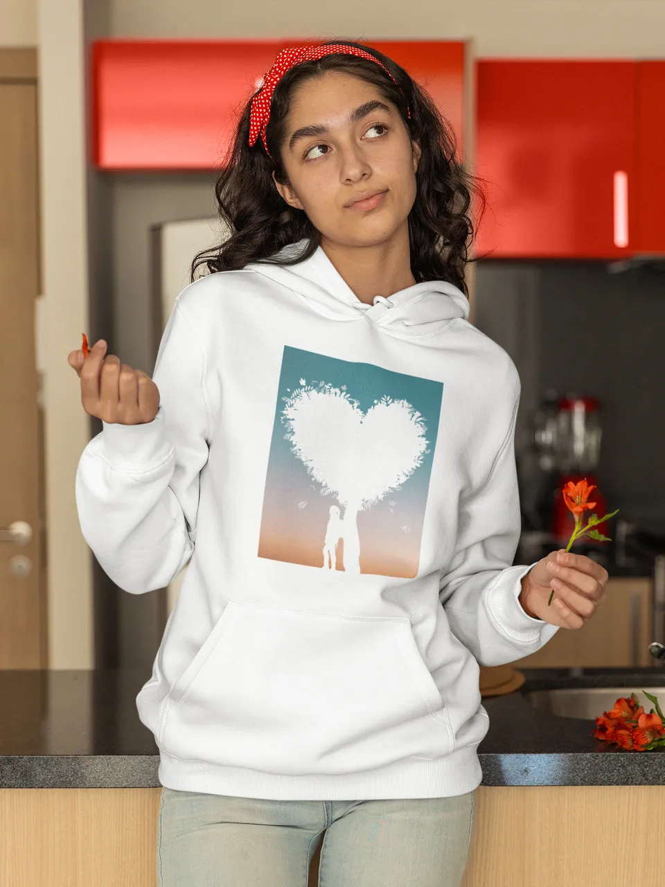 Dámská mikina s kapucí a kapsami Strom a Srdce
